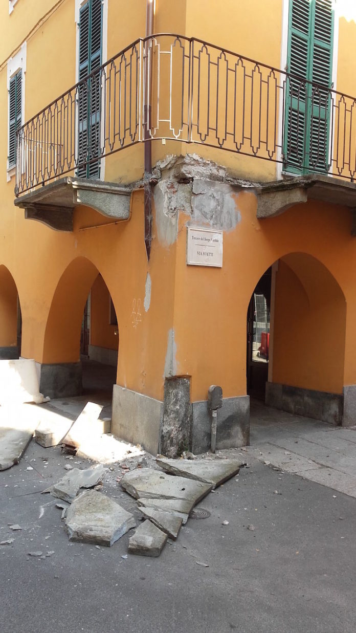Ha girato troppo stretto, nella curva tra via Boetti e via Garibaldi, e sradicato gran parte del balcone del palazzo ad angolo fra le due strade. È accaduto domenica mattina, intorno alle 9, ad un camion della nettezza urbana, che con lo sportello del cassone ha urtato e fatto precipitare a terra una grande lastra del pavimento, per fortuna senza provocare danni alle persone. L’autista non si è fermato ed è stato rintracciato soltanto in un secondo tempo, grazie alla testimonianza di due vicini.