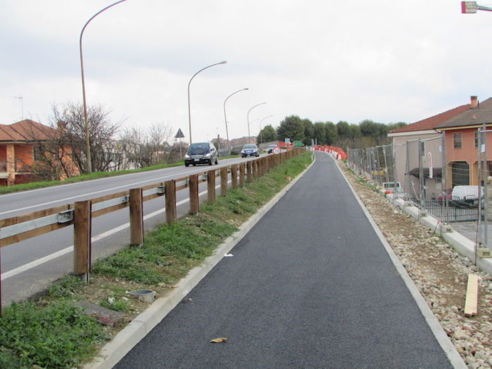 In via Torino sono stati aggiunti due nuovi tasselli: l’asfaltatura della pista ciclo-pedonale e quella dell’incrocio dove nelle settimane passate erano state realizzate la rotonda e le aiuole spartitraffico. Mancano ancora la passerella di ferro a fianco del ponte (per la quale si attende un nuovo via libera di Rfi), la barriera di protezione della pista lungo la scarpata (mentre è stata recentemente realizzata quella in legno per dividerla dalla strada) e l’asfaltatura della malandatissima via Fraschea, ampiamente usurata dal continuo passaggio di mezzi pesanti (intervento che dovrebbe essere a cura e a spese dell’Anas, a titolo di compensazione per la chiusura ai camion della tangenziale). La previsione più attendibile è che, per avere il quadro finalmente compiuto, si debba aspettare la prossima primavera.
