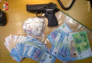 Gli agenti hanno inoltre effettuato delle perquisizioni a carico dei due, insieme con una unità cinofila giunta da Torino. Sono stati così stati rinvenuti circa un etto di cocaina suddivisa in 21 dosi, tre bilancini di precisione con cui la droga veniva pesata, 18mila euro in contanti ritenuti “provento dell’attività di spaccio”, una pistola semiautomatica che fu rubata nel 2018 ad Arezzo.