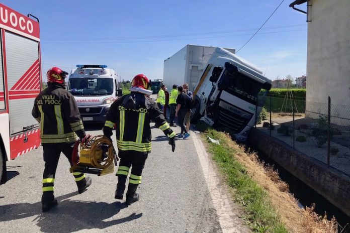 Scontro fra un camion e un mezzo agricolo in via Villafalletto a Fossano: è successo nella tarda mattinata di oggi (venerdì 7 maggio). Coinvolti un trattore e un camion. Il secondo veicolo, in manovra di sorpasso, ha agganciato la ruota del primo che si stava accingendo a svoltare a sinistra. L'impatto ha provocato lievi conseguenze per il conducente del trattore. L'autista del camion è rimasto illeso. Ma il suo mezzo è finito in un fosso ed è stato necessario l'intervento della gru del soccorso Aci per riportarlo sulla carreggiata. Fino al primo pomeriggio la strada è così rimasta chiusa al traffico. Sono intervenuti Polizia locale di Fossano, Soccorso stradale di Fossano, vigili del fuoco di Cuneo e Fossano, 118.