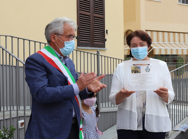 Unico grande assente Massimo Bussone il responsabile dell’Ufficio tecnico morto lo scorso aprile, ricordato con parole di commozione dal primo cittadino che ha consegnato una targa in sua memoria alla moglie presente alla cerimonia insieme ai genitori; la nipote Elena di 7 anni era una delle bimbe che sosteneva il nastro del taglio.