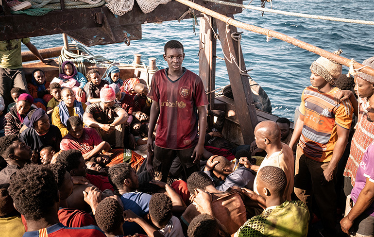 "Io capitano" di Matteo Garrone. Seydou e Moussa, due giovani senegalesi, lasciano il loro Paese per raggiungere l'Europa, affrontando il deserto, i centri di detenzione in Libia e la traversata nel mar Mediterraneo.