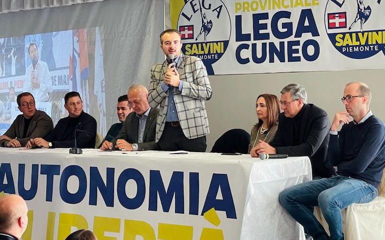 Bandiere sulla rotonda e all’ingresso del Giardino dei tigli, salone interno gremito con oltre 300 partecipanti da 80 Comuni cuneesi e piemontesi. Era la festa di Natale della Lega - la “Lega di governo”, come recitava il sottotitolo del manifesto - che si è tenuta sabato 2 dicembre a Cussanio.
