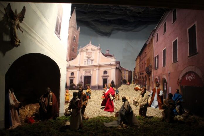 Al di là di esso, protetto da una superficie trasparente, c'è il presepe: è possibile vederlo da via Roma, senza entrare nella chiesa, nei giorni festivi fino al 21 gennaio, quando si svolgerà la Fiera della beata Paola, dedicata alla patrona del paese. Alla presentazione del presepe, si sono esibite la Banda musicale di Bene Vagienna e alunne e alunni della scuola primaria locale. Il pomeriggio si è concluso nella cappella dei Magi, dove hanno intonato alcuni brani i Cantori di Revello.