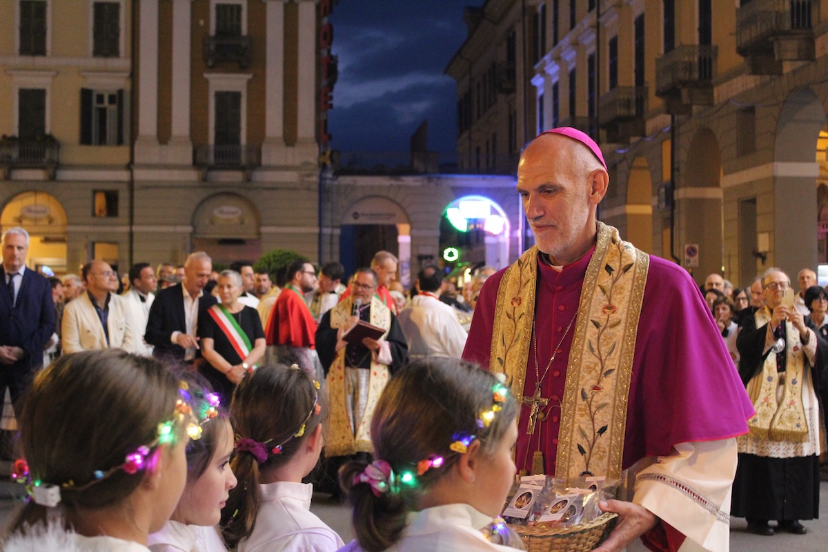 Molti lo conoscono dai tempi dell’infanzia, alcuni ne hanno solo sentito parlare, altri non sanno chi sia. Con tutti, però, padre Aurelio Gazzera (missionario carmelitano di origine cuneese, ordinato vescovo per la diocesi di Bangassou, in Centrafrica, il 9 giugno scorso) si relaziona con il suo stile semplice, diretto ed affabile. Lo fa in questa “trasferta” italiana del mese di luglio, incontrando i suoi famigliari residenti tra Cuneo e Fossano, la famiglia spirituale da cui proviene (quella dei missionari Carmelitani scalzi di Arenzano) e presenziando alcuni momenti liturgici. Come quello di sabato 13 luglio a Cuneo, in occasione della processione della Madonna del Carmine (nella foto in alto), e di domenica 14, con la celebrazione eucaristica nella parrocchia del Cuore Immacolato di Maria, in cui ha mosso i suoi primi passi di fede.