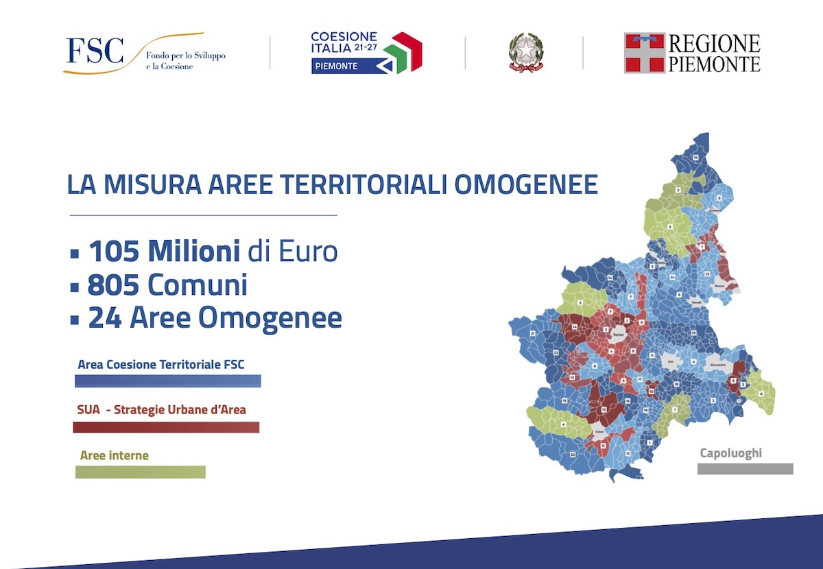 Nel complesso, l’obiettivo è ambizioso: attenuare i divari di sviluppo delle diverse aree, valorizzarne specificità e diversità e quindi far diventare il Piemonte un territorio innovativo, più coeso e più sostenibile per affrontare nel modo migliore le sfide che ci attendono nei prossimi anni.
