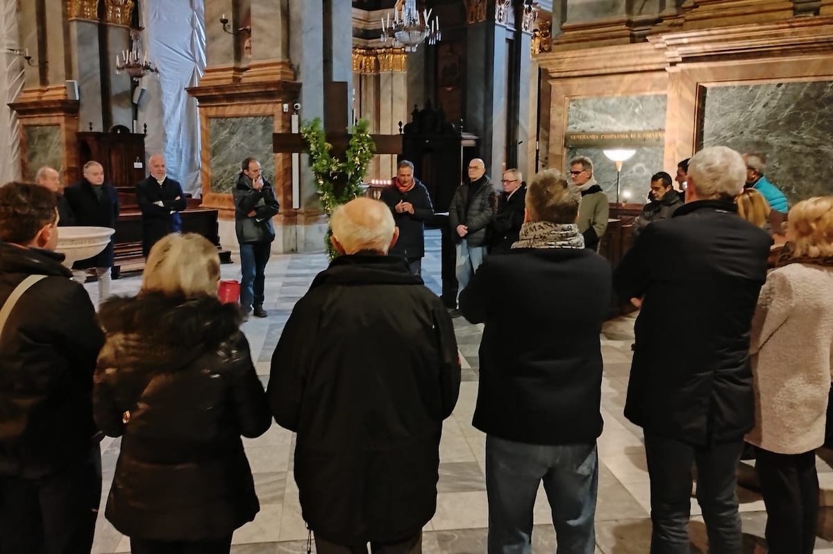 Dopo la prima tappa solo un gruppetto è entrato all’interno della casa di reclusione, per proseguire il rito insieme ai detenuti. Gli altri hanno fatto rientro in Duomo dove, insieme al vicario diocesano per la pastorale don Flavio Luciano che già aveva introdotto la celebrazione (nella foto), hanno continuato il pellegrinaggio di speranza in preghiera.