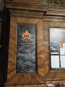 Nell’occasione di questo 234° compleanno sono stati posti due stemmi che ricordano il grado di basilica pontificia in corrispondenza dei due grandi pilastri che incorniciano l’uscita.