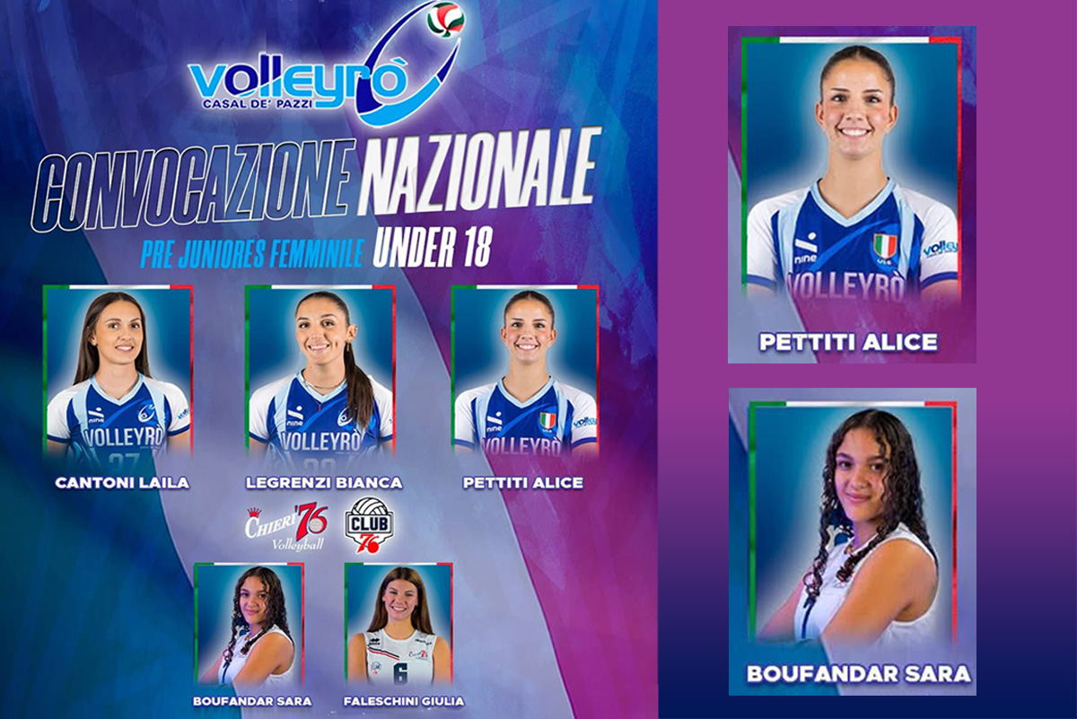 La Federazione Italiana Pallavolo, su segnalazione del Direttore Tecnico delle Attività Giovanili Femminili, Marco Mencarelli, ha infatti convocato per un raduno a Milano 15 atlete inserite nella Nazionale pre-juniores (ovvero Under 18), tra le quali due fossanesi: Alice Pettiti, oggi in forze al Volleyrò Casal de’ Pazzi, e Sara Boufandar, del Chieri 76. Con loro, appunto, altre dodici giocatrici che, provenienti da tutta Italia, sono ritenute a oggi le migliori dello Stivale.